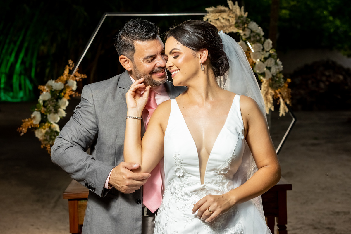 A cerimônia foi ao ar livre e os convidados testemunharam a união desse casal apaixonado.